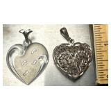 (2) Vintage Sterling Heart Pendants 1-Crystal