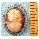 Large Vintage Sterling Carved Cameo Pendant