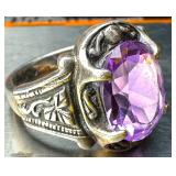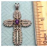 Vintage Sterling Silver w/Amethyst Cross