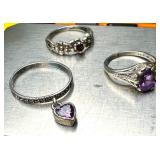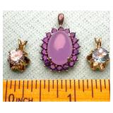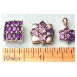 (3) Vintage Sterling & Amethyst Pendants