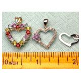 (3) Vintage Gemstone Sterling Heart Pendants