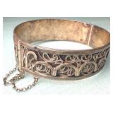 Antique Sterling Signed Ornate Heavy Bracelet