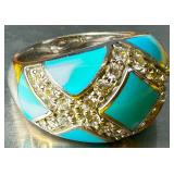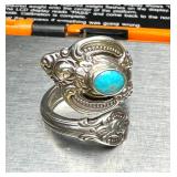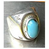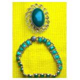 Large Natural Turquoise Bracelet & Sterling Ring