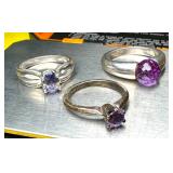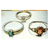 (3) Sterling Silver Gemstone Rings