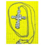 Vintage Sterling Ornate Cross & Necklace