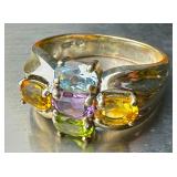 Large Beautiful Sterling Silver & Gemstone Ring