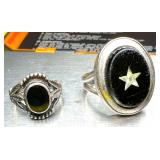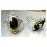 (2) Black Onyx & Sterling Rings