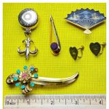 Vintage 14k Solid Gold Gemstone Brooch 3.62g
