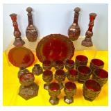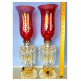 (2) Vintage Ruby Glass w/Ruby Prisms Lamps
