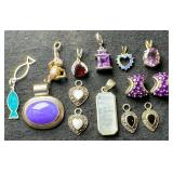 (2) Large Sterling & Gemstone Pendants