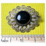 Victorian Large Heavy Sterling & Onyx Brooch