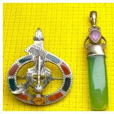 (2) Unusual Sterling Pendants (1 is Jade)