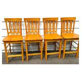 (4) Maple High-Back Wood Bar Stools