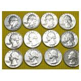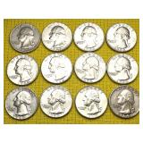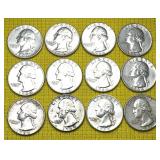 (12) Silver Washington Quarters