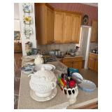 This weekend we have a fantastic sale for you in Lakewood in the beautiful Four Seasons Community. Everything in this home has been lovingly cared for by its owners, who now have decided it was time to downsize into a smaller place. This means leaving behind many treasures looking for loving new homes! Both homeowner's are artists, and we have many works here for sale to be proudly displayed by its new caretaker. A gorgeous French provincial dining room set, complete with leaves/pads and lighted china credenza. Inlaid wood secretary desk in the French style. Formal living room furniture, Sligh Grandfather Clock, suede sleeper sofa, various rugs, blue and white china pieces, silver plated silverware, Longenberger, cast aluminum patio set, weber BBQ grill, tons of art supplies, canvas, paint brushes, easel, etc. Holiday decor, bedding, clothing, and costume jewelry. A large collection of political buttons collected through the decades, office items, office desk, cameras, brass and copper pieces, roosters, books, antique furniture, French provincial desk, TV's, floor steamer, shop vacuum, tools and so much more!!! As always we look forward to seeing everyone at Another Great Estate Sale!  |