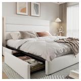 Allewie Modern King Size Platform Bed Frame with 4 Storage Drawers and Velvet Upholstered Headboard, Wooden Slats Support, Upholstered Mattress Foundation/No Box Spring Needed/Easy Assembly, White