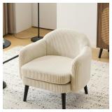 VINGLI 30.3" Wide Modern Barrel Accent Armchair with Track Armrest, Solid Wooden Legs, Comfy Upholstered Club Chair, Round Single Home Sofa for Living Room, Bedroom, Reading Room, Corduroy Beige