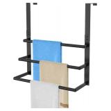 16Inch Over The Door Towel Rack, DOKU Stainless Steel Door Towel Hanger, Over Door Towel Holder with 3 Tier Towel Bars, Over Door Towel Storage for Bathroom, Matte Black