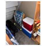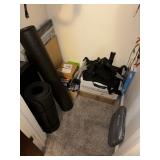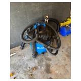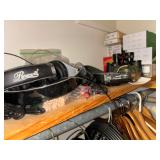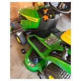 MISC.: John Deere S140 riding lawn mower w/ 48" deck (54.3 hours), MTD Yard Machines 14.5 HP 42" riding automatic drive lawn mower, Sanborn 60 gallon tank air compressor 140 PSI 230 Volts, 8 ft utility trailer, Utility cart, Powerhouse Elite weight machine, Craftsman drill press, Craftsman tool cabinet, Craftsman router, Central Forge S 30027 pipe threading 5 pc. kit, 21 piece 3/4' drive S.A.E. socket wrench set, Porter Cable tools, Craftsman Industrial reciprocating saw, Large vise, Skilsaw table saw, Wheel barrow, Chain hoist, Delta chop saw, Chicago Electric 10" circular saw, Chicago Electric 10" 2.5 HP industrial tile / brick saw, Flushmount twin pack light fixtures, Airstream 7 gallon 125 PSI air compressor, Central Pneumatic 3 gallon 100 PSI air compressor, Saws, Large amount of wrenches, Expert gas grill, Poulan pro 42cc chainsaw, VacMaster wet/dry vac, Samsung flat screen TV, Water cooler, Shockwave Machine massager, Pots & pans, Kitchenware, Air conditioner, Vacuum, Coolers & Thermoses, Filing cabinet, Household items, 30 ft. aluminum extension ladder, Aluminum ladders, Computer printers, Gas cans, Shovels, Blower, Weed whacker, Car jack stands, Yard & lawn tools, Tools & hardware, Wire, AND MUCH MORE!