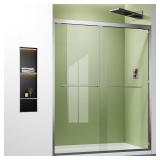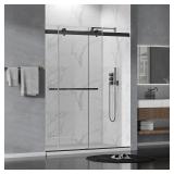 (142). 56"-60" W x 75" H Frameless Shower Door, Double Sliding Shower Door,5/16"(8mm) Clear Tempered Glass,Silent Soft-Close Design,Matte Black