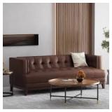 (49). AMNOOL 3-Seater Mid-Century Modern PU Leather Sofa with Stunning Wood Frame and Diamond Tufted Stitching - Perfect for Small Spaces (Dark Brown)