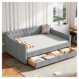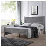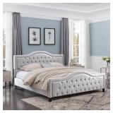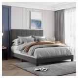 URTR 84 in.W Gray FULL Size Upholstered Platform Bed with Tufted Headboard, Upholstered Bed Frame, Box Spring Needed