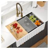 【Easy to Clean】This is a very easy to clean farmhouse sink, its surface is very smooth, and food residue is difficult to adhere to the surface of the farm sink.In addition, the corner of apron sink is designed with an R10 arc, which makes it easy for sponge or cloth to enter the corner.When cleaning the farmer sink, please use a dry, damp cloth, or sponge.