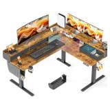 63 Inches Height Adjustable L Shaped Standing Desk with 3 Drawers and Monitor Shelf, Electric Corner Comupter Desk, Sit Stand up Home Office Desk, Ergonomic Gaming Desk, Rustic Brown