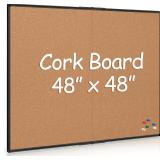 Board2by Extra Large Cork Bulletin Board 48" X 48", Foldable Notice Pin Board for Wall, Black Aluminum Framed 4'x4' Corkboard, Wall Mounted Noticeboard with 36 Push Pins for School, Home & Office