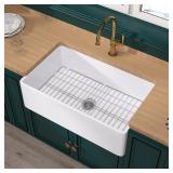 Fine Fireclay Sturdy Farmhouse Sink】Miuara farmhouse sink 33 inch is made of 100% fine natural fireclay fired at extremely high temperature above 2600℉ for 26 hours,it’s very hard and sturdy.And the solid core construction makes the fireclay farm sink superior strengthen and durable to withstand heavy use, which is highly resistant to impact,thermal shock, crack and scratch.Miuara white apron sink is classic and gorgeous!