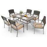 ****CHAIRS ONLY**** Pamapic 8504 Patio Dining 7 Piece, Outdoor Wicker Furniture Set for Backyard Garden Deck Poolside/Iron Slats Table Top, Removable Cushions, 7 Pack, Beige