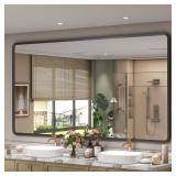 66x36 Inch Black Matte Framed Mirror for Bathroom, Rounded Rectangle Mirror, Bathroom Vanity Mirror for Wall, Anti-Rust, Shatterproof (Horizontal/Vertical)