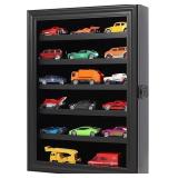 Toy Cars Display Case 1/64 Scale Diecast Car Display Case Wall Mount Model Car Display Storage Cabinet Lockable with Real Glass & Removable Shelf Rack -Black