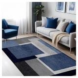 3x5 Area Rug Bedroom, Blue Grey Modern Geometric Rugs, Square Contemporary Indoor Floor Carpet, Low Pile Soft Washable Rug for Office Room Kitchen Decor