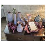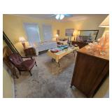 Homeowner was a vintage/antique collector and store owner. Lots of collectables. 3-2-2 home in the country on 10 acres Leather Couch, 2 Matching Chairs and Foot Stools China Hutch (2 pc) Johnson Brothers Riverfront China Royal Wessex Blue Willow China Victrola VV-110 with Albums MCM Bowfront Cupboard Van Briggle Pottery Crystal (Federal, Wexford, Imperial, Northwood, EAPG, Fostoria, Victorian) Vintage Dropleaf Table with 4 chairs Single Curio with side doors Pink Milk Glass (Fenton, Cambridge, Fostoria) Lenoir House Curved Glass China Cabinet Plates, Teacups and Saucers Cranberry Glass (Fenton, Pilgrim) Vintage Sewing Rocker Hide-a-bed couch Queen Anne Coffee Table with Two End Tables Oak Sofa/Hall/Foyer Table Chippendale Style Hall Chairs Grandfather Clock Kitchen Small Appliances, Pots, Pans, Baking pans Cast Iron (Lodge, Griswold, and Wagner) Pink Depression Glass (Fostoria, Hazel-Atlas. Mosser, Thistle pattern) Blue Cobalt Glass Vintage Cookbooks Vintage Office Desk (Small) Ashtrays (Crystal, Milk glass, Amber) Green/Emerald Depression Glass (Anchorware) Delftware Vintage Curio Cabinet Vaseline/Uranium Glass (Fenton, Boyd, Gibson) Brass Décor Powell Jewelry Cabinet Replogle World Globe Vintage Reverse-painted Lamp Cobalt Blue Lantern Snow Leopard Eyes Print Vintage Large Fenton Italian one Horn Epergne Antique Books Pink Milk Glass (Jeannette, Fostoria, Fenton) White Fine Furniture Bedroom Set (Dresser, Chest, Nightstands, Headboard) Costume Jewelry Fenton 75th Anniversary Edition Velva Rose Stretch Glass 5pc Epergne GORGEOUS!! Men’s Clothes King Bed Metal Frame Linens (Sheets, Blankets, Quilts) Vintage Maple Bedroom Set (Dresser, Vanity, Side Table) Pink Depression Glass Electric Lantern Women’s Clothes Designer Handbags Quilts - Women's Boots Koslow’s Furs Drexel Cabinet Vintage Solid Wood Chest Women’s Clothes  |