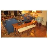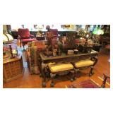 Jenior Appraisals & Liquidations, LLC PRESENTS: “The Bayer Collection” 1091 Sand Run Road Akron, Ohio 44313 Directions: I-77 North to White Pond Drive exit. In less than one mile, turn Right onto Frank Blvd. Then, in less than a half mile, turn Left onto West Market Street. Then, in approximately a half mile, turn Right onto Sand Run Road for approximately 2 miles. (Watch for JENIOR signs). Thursday November 6, from 10:00 a.m. – 4:00 p.m. Friday November 7, from 10:00 a.m. – 4:00 p.m. Saturday November 8, from 10:00 a.m. – 4:00 p.m. Sunday November 9, from 10:00 a.m.—4:00 p.m. * Please note: NO PARKING ON SAND RUN ROAD. Parking permitted on surrounding side streets ONLY. Please be respectful of the neighborhoods, keep vehicle tires on the pavement, and do not block driveways or fire hydrants.* -Akron Police will be present for parking instructions. Quality Antique & Traditional Furniture: Impressive selection of quality antique American and European furniture purchased at fine antique galleries throughout the country as well as quality designer furniture supplied by design firms such as Chet Edwards, Chez-Del, Dan West, Sedlak, and more; antique English heavily carved bombe form bureau (drop front desk); antique 18th century Louis XIV fauteuil (arm chair) with needlepoint; (2) Queen Anne-style wing chairs with flame stitch fabric (from Chez-Del); Dutch-style carved and lighted display cabinet; glass top cocktail table with x-stretcher base and brass finials; Yorkshire House INC English ottoman; Wright Table Co. Chinese Chippendale-style console / sofa table; selection of vintage carved mahogany accent tables; antique carved Asian accent table with red lacquer finish and marble top; Savonarola-style bench with custom cushion; antique carved Gothic-style arm chair with linenfold carvings; (2) antique carved and upholstered Italian Renaissance-style arm chairs; oak butler’s style cocktail table; Henredon carved wing chair with leather and nail heads; (2) navy blue leather sofas; antique Indian low table with wrought iron accents; American of Martinsville oak credenza with parquetry doors; unique hand painted octagonal accent table; antique English heavily carved oak handkerchief table, circa early 19th century; oak ottoman with brass escutcheons and woven black leather top; Link-Taylor oak console / sofa table; (2) Link-Taylor oak ottomans with suede top and nail head trim; (4) deep cobalt blue vinyl upholstered and wooden swivel bar stools (counter height); vintage 2-drawer depression-era drop front secretary desk; wrought iron and wooden round dinette table with faux marble top and (4) wrought iron, oak, and caned chairs (purchased at Chez-Del); vintage bench with rush seat; vintage tea carts; Antique heavily carved French Renaissance Revival-style 2-piece sideboard; antique walnut 54” round dining table with (4) leaves; selection of vintage and antique dining side chairs; Sligh Mahogany grandfather clock (model 0943-1-CM); antique heavily carved Italian Renaissance-style arm chair; heavily carved Chippendale-style marble top console / sofa table (finished on all sides); Bombay Co. flip top extending console / sofa table; wicker console / sofa table with glass top; (2) octagonal glass top accent tables with ornate etched patinated metal bases; vintage faux bamboo barrel back arm chair with caned back; carved “rope and tassel” arm chair; Maitland-Smith Regency-style hand painted Carlton House desk; gate leg table with drawer; heavily carved Chippendale-style cocktail table with verde marble top; vintage Jacobean-style carved credenza; antique carved Jacobean-style oak arm chair; Bernhardt Furniture Co. carved Chippendale-style console / sofa table with beveled glass top; (2) Bernhardt Furniture Co. carved Chippendale style ottomans with upholstered seats; carved Chippendale-style settee; vintage wooden book stand; selection of antique carved arm chairs; (2) Henredon striped damask upholstered sofas; Chinoiserie ebonized and painted lighted breakfront cabinet; vintage ornate 3-tier gilt metal stand; ornate patinated metal and granite pedestal; carved Asian-style plant stand with marble top; heavily carved Asian-style arm chair with serpents; Gothic-style tooled leather clad accent table with iron legs; antique Middle Eastern carved cabinet; wooden etagere; selection of unique tilt-top tables from hand painted to inlaid; (2) carved and upholstered arm chairs; ornate metal and eglomise art easel; Charles Stewart Company damask upholstered sofa with nail head trim; Thomasville Queen Anne-style leather arm chair; mahogany partner’s desk; vintage high back arm chair with faux black leather and brass finials; selection of designer accent tables with custom cloths; antique Asian tansu chest; vintage Asian apothecary chest; vintage Drexel 9-drawer dresser; carved oak armchair with tapestry; antique continental heavily carved trunk; Lane armoire; ornate iron king canopy bed (purchased at Chez-Del); antique Victorian marble top parlor table; carved French Country-style bench with rush seat; Drexel 5-drawer chest; vintage Imperial of Grand Rapids hand painted accent chest; antique small oval Victorian marble top table; Henredon armchair with Southwestern-style fabric; “Sitting Pretty” power lifting recliner (recently purchased and never used); Asian-style gilt metal cocktail table with round glass top; vintage oak bedroom furniture by Thomasville including dresser with mirrors, full/queen headboard, and bedside chest; vintage spinet desk with chair; Henredon oversized damask upholstered carved wing chair with ottoman; faux leather arm chair; Ficks Reed rattan furniture including round glass top dinette table with (4) chairs, (2) loveseats, (2) arm chairs, and round glass top cocktail table; Henredon bureau plat (writing desk); Sherrill carved Chippendale-style console / sofa table; vintage drop front secretary with bookcase top; antique Jacobean-style oak carved accent table;