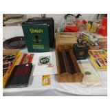 COLLECTIBLES: Keystone #5 Hand Meat Grinder Premo Film Pack Tank Bottles – Beer & Pop 12 pk Pickett’s Beet Beanies Star Wars DVD Full box of Tide Soap signed by Darrel Waltrip Wooden Box - Wagner Lockheed Hyd Brake Fluid Wooden Box - Produce of France J&F Martell Cognac Paper Weights Coke Items - Bottles – Cases – Literature – Bears – Timer – Bank Bag – Tin – Alarm Clock – Action Bank – Pitcher – Globe – Flash Lite – Puzzle Doral Across America Tin Barbie Trinket Boxes Penguin Trinket Boxes Other Trinket Boxes Birds Fisher Price toy Little Tikes Bous Caroon Glasses Superman Glove Star Wars Real Sound Yodo Aircraft Recognition Playing Cards Marlboro Playing Cards Eagle Collector Plates Eagle Figurines Joe Camel Tins Joe Camel Mug Joe Camel Cans Carrier Smokin Joe’s Racing Tin w/matches Cigar Boxes Condados – Macanudo – LaTraviata – Chillin Moose – Juan Lopez – Phillies Pogs in Binders Bandits Bobble Heads Trading Cards Key Chains Fobs Signed Caps & Shirt Older Trading Cards Bee’s Swing & Twins Cards Bob Necker Key Chain McDonald’s Toys in Packages Boyds Bears Figurines Isabel Bloom’s Sports Cards Power Ranger Cards Superman Cards Casper Cards Cinderella Cards Nascar Cards Music Rocker Cards Label Pins