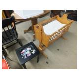 FURNITURE: Sleeper Sofa Oak End Table w/Drawers Oak Table w/1 leaf & 5 chairs Viking Sewing Machine in Cabinet Oak Teacher’s Desk Entertainment Centers Duncan Phyfe Table w/6 Chairs – 3 leaves & pads 6 Drawer Dresser Telephone Table w/seat Benches (2) Treadle Sewing Machine Square End Tables Glass Inserts Brass & Glass Shelf Unit Misc Chairs Trash Bin George Steck Piano Oak Table Leaves Humpback Trunk 2pc Oak China Hutch Howard Miller Grandfather’s clock Baker’s Rack TV Stand Small Oval Table Walnut Bed Frame Child’s Wicker Sofa Craddle High Chair Toy Box