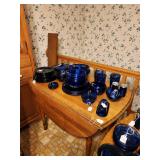 2nd Sale weekend at our eclectic estate sale for the estate of Stephen Ellis and Ann Hamilton. As this is the 2nd weekend, therefore we are starting Sat. 50% off everything. There is a very large collection of cobalt blue glass ranging from antique to contemporary, cobalt blue glass, miniature vintage and antique child's kitchen dish sets, vintage corning dishes with lids in both the blue cornflower pattern and the floral bouquet pattern. Vintage pyrex mixing bowl set, Corning corelle dishes, Gibson china set, t-fall pans and skillets, a countertop grill, 1200 watt Panasonic microwave, Kurig, Kraut cutter, Dehydrators, and fondu pot. We have many albums, Dehumidifier, fans, coolers, Decorative curtain rods, wall paper hanging tables, ladders, scaffold, vintage torch lamp globes, a sony deam machine, meat grinders, jigsaws, circular saws, advertising milk bottles, star wars comforter, footstool puff and a hall tree/coat rack. There is a beautiful, overstuffed couch with matching love seat and single seat in blue, leather love seat, antique parlor tables, plant stands, 1 barrister bookcases, a new crib with mattress, a beautiful antique carved wood chair made by Michigan chair co. from Grand Rapids Mi. circa 1900. A beautiful dry sink / washstand with towel bar and tilting mirror, an antique Eastlake style Walnut dresser with marble inset and mirror and valet drawers, an Eastlake style, double bed frame, a smokers stand, a Walnut dresser. A variety of coats. Matching hide-a-bed and love seat, a mid-century modern Danish lounge chair, a large leather recliner, a beautiful secretary desk, a bar height table with 4 chairs, a tiger oak pedestal table with 2 leaves, a drop leaf oak table and a horse collar mirror. There is a beautiful antique light-colored china cabinet, a small roll top desk, a vintage singer sewing machine in cabinet, many assorted brass lamps and torchiers floor lamps, breweriana and beer themed wall clocks.