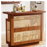 Rustic Rattan Finish - This bar unit boasts a vintage-style woven rattan finish in a warm farmhouse brown, blending beautifully with various interiors. The design also maintains ideal storage conditions.