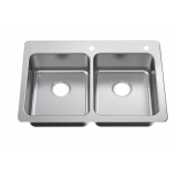 *Edge Bent* Glacier Bay Bratten 33 in. Drop-In 50/50 Double Bowl 18 Gauge Stainless Steel Kitchen Sink with Accessories