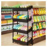 Tribesigns 4-Tier Retail Display Rack, Wooden Snack Candy Stand, Concession Potato Chip Display Rack, Storage Shelf Organizer with Heavy-Duty Metal Frame, Easy Assembly(1, Black)