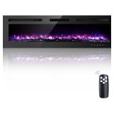 (367) 60 Inch Wall Mounted Electric Fireplace Inserts, 12 Flame Color, Overheat Protection and 1-8h Timer, 750/1500W Heat Settings, Logs & Crystal