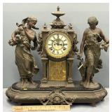 Antique Ansonia Figural Mantle Clock Lute Player |