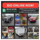 1 Starts Closing Wednesday, November 12th @ 7 P.m. Starts Closing Wednesday, November 12th @ 7 P.m. 1 Inspection Dates: Tuesday, November 11th: 3-5 P.m Inspection Dates: Tuesday, November 11th: 3-5 p.m. Auction Location:28466 County 25 South, Peterson, MN You are encouraged to join our inspection days. NO REFUNDS OR RETURNS on items. It's the buyer's responsibility to check item(s) for completen 1 Pick-up: Thursday, November 13th | 9:00 Am � 6:00 Pick-Up: Thursday, November 13th | 9:00 AM � 6:00 PMor by appointment! Auction Location:28466 County 25 South, Peterson, MN 1 Payment: Cash, Credit/debit Card Or Good Check (wi Payment: Cash, Credit/Debit Card or Good Check (with a positive I.D.) payable to Becker Auction paid on pick up day before removing merchandise. Premium: 15% Buyer Fee added to your items unless otherwise stated. 5% discount on cash and check purchas 1 Shipping Available! Fees Apply; Heavy & Bulky Item Shipping Available! Fees Apply; Heavy & Bulky Items Can Get Expensive! Please keep this in mind while bidding! Local Pick-Up Preferred 1 Auction Location: Becker Tree Farm - 28466 County Auction Location: Becker Tree Farm - 28466 County 25 South, Peterson, MN 1 Please Watch Your Quantities - Make Sure You Know PLEASE watch your quantities - make sure you know if it is TIMES the money or if you are bidding on ONE lot 1 Login Issues- Call 844.775.4774 Login Issues- Call 844.775.4774 1 Ford F-150 Pickup Truck; Maroon Ford F-150 4-door 2010 Ford F-150 Pickup Truck; Maroon Ford F-150 4-door 4wd Truck With 152,000 Miles, Like-new Rubber, Very Good Running Condition. 2 Dodge Journey; 4-door Family Car, Everything Works 2010 Dodge Journey; 4-door Family Car, Everything Works, 170,000 Miles, Good Driving Vehicle. 3 12-foot Enclosed Trailer; Single Axle Enclosed Tra 12-Foot Enclosed Trailer; Single axle enclosed trailer with like-new tires, tool racks inside, dual swinging doors, 2-inch receiver hitch; good condition. 4 Lull Heavy Duty Man Bucket; 54-inch Wide By 10-f Lul Heavy Duty Man Bucket; 54-inch Wide By 10-foot Long Heavy-duty Construction Low Bucket With Tie-off Chains. 5 Toro Push Lawn Mower; 20-inch Toro Push Mower, Wor Toro Push Lawn Mower; 20-inch Toro push mower, works. 6 Set Of Four Hercules Terratrac Tires With Rims; 4 Set of Four Hercules TerraTrac Tires with Rims; 4 Hercules TerraTrac truck tires with rims, size 275/70R18. 7 36-inch Concrete Power Trowel; 36-inch Power Trowe 36-Inch Concrete Power Trowel; 36-inch power trowel, needs work. 8 Boxes Of Trk Hex Screws; 5 Boxes Of Miscellaneous Boxes of TRK Hex Screws; 5 boxes of miscellaneous TRK hex screws. 9 Stabila Framing Level; 5-inch By 6-foot Stabila Fr Stabila Framing Level; 5-inch by 6-foot Stabila framing level, made in Germany, like new. 10 Lot Of Heavy-duty Torque Screws; Large Lot Of Asso Lot of Heavy-Duty Torque Screws; Large lot of assorted heavy-duty torque screws. 11 Boxes Of Trim Nails; 8 Boxes Of Miscellaneous Trim Boxes of Trim Nails; 8 boxes of miscellaneous trim nails in various colors. 12 Drywall Screws; Box of 1-1/4 inch drywall screws. Drywall Screws; Box of 1-1/4 inch drywall screws. 13 Maytag Ringer Washer; Appears in good condition. Maytag Ringer Washer; Appears in good condition. 14 Senco Framing Nails; Box of 2-inch Senco framing n Senco Framing Nails; Box of 2-inch Senco framing nails, thick nails. 15 Drill Bits, Tools & Hardware; Miscellaneous drill Drill Bits, Tools & Hardware; Miscellaneous drill bits, tools, and hardware lots. 16 Pole Barn Nails; Box with 5-inch pole barn nails. Pole Barn Nails; Box with 5-inch pole barn nails. 17 Joist Hangers; 2 boxes of miscellaneous joist hang Joist Hangers; 2 boxes of miscellaneous joist hangers, various sizes. 18 Machine Bolts; Box with 1/2 inch by 10 inch machin Machine Bolts; Box with 1/2 inch by 10 inch machine bolts. 19 8 Penny Nails; 50 lb box of 8 penny hand nails. 8 Penny Nails; 50 lb box of 8 penny hand nails. 20 Adjustable Roof Jacks; Lot of 10 adjustable roof j Adjustable Roof Jacks; Lot of 10 adjustable roof jacks. 21 Adjustable Roof Jacks; Lot of 5 adjustable roof ja Adjustable Roof Jacks; Lot of 5 adjustable roof jacks. 22 Adjustable Roof Jacks; Lot of 10 adjustable roof j Adjustable Roof Jacks; Lot of 10 adjustable roof jacks. 23 Roofing Jacks; Lot of 5 roofing jacks. Roofing Jacks; Lot of 5 roofing jacks. 24 Roofing Screws; Large lot of partial box 1-1/2 inc Roofing Screws; Large lot of partial box 1-1/2 inch roofing screws. 25 Roofing Screws; Same as Lot 24. Roofing Screws; Same as Lot 24. 26 Roofing Screws; Same as Lot 24. Roofing Screws; Same as Lot 24. 27 Roofing Screws; Approximately 1,000 1-1/2 inch roo Roofing Screws; Approximately 1,000 1-1/2 inch roofing screws. 28 RET Roofing Screws; Approximately 750 RET roofing RET Roofing Screws; Approximately 750 RET roofing screws, 1-1/2 inch. 29 Square Head Screws; Approximately 1,000 square hea Square Head Screws; Approximately 1,000 square head 1-inch screws. 30 Milwaukee Hammer Drill; Heavy-duty electric hammer Milwaukee Hammer Drill; Heavy-duty electric hammer drill with concrete bit, works. 31 Roto-Zip Tool; Electric Roto-Zip with bit, works. Roto-Zip Tool; Electric Roto-Zip with bit, works. 32 Senco DS200 Drywall Screw Gun; Electric drywall sc Senco DS200 Drywall Screw Gun; Electric drywall screw gun, works. 33 Senco DS312 18V Drywall Screw Gun; Includes extra Senco DS312 18V Drywall Screw Gun; Includes extra battery and charger, works. 34 Senco DS312 18V Drywall Screw Gun; Same as Lot 33, Senco DS312 18V Drywall Screw Gun; Same as Lot 33, works. 35 Senco Air Finish Nailer; 18-gauge finish nailer, w Senco Air Finish Nailer; 18-gauge finish nailer, works. 36 Bostitch Finish Nailer; 18-gauge finish nailer, wo Bostitch Finish Nailer; 18-gauge finish nailer, works. 37 Master Force Roofing Nailer; Works. Master Force Roofing Nailer; Works. 38 Master Force Impact Ratcheting Wrench; Includes on Master Force Impact Ratcheting Wrench; Includes one battery, no charger, works. 39 Mast