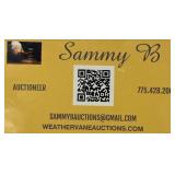 Weathervaneauctions.com 10 Bench RD Fallon, NV 89406 do.not.reply.auctionsbuysammyb@outlook.com Location 10 Bench rd Fallon, NV 89406 775-428-2009 Open Monday - Wednesday 10am - 5pm YES WE SHIP*** please allow 3 to 4 weeks for shipping if needed Invoices will be sent from this e mail. Please add it to your contact information so you can recieve them do.not.reply.auctionsbuysammyb@outlook.com Local Pick up Will be with Samantha at Weathervane Auctions 10 Bench Road, Fallon, NV 89406 Please schedule a pick up time and date. 775-848-3132 to schedule appointment Gun Locks are avaliable at $9.99 each for Pistols or you may bring your own. They can not leave with out a lock! All Guns will be subject to a $20 Handling fee and Brady if needed. + $10.00 Trigger lock Fee for Pistols Yes we will shiop Gun to Licensed FFL Dealers only. So if you are a buyer I will need a copy of an FFL Dealer in your state in which I can Ship Legal guns for your State to for you to complete the paperwork. WE WILL NOT SELL AMMO DIRECT TO THE FOLLOWING STATES UNLESS WE ARE SHIPPING TO A FFL DEALER for AMMO in These States CALIFORNIA, NEW YORK, NEW JERSEY, ILLINOISE, MARYLAND, MASSECHUSETTS, HAWAII, CONNECITCUT, ALASKA, OREGON MAIN # MONDAY & TUESDAY & WEDNESDAY OPEN 10AM TO 5PM PACIFIC TIME IS 775-428-2009 OR 775-848-3132 FOR TEXTING CREDIT CARD, WIRE TRANSFER OR CASH FOR LOCAL PICK UP BUYERS PREMIUM 18% (UNLESS PROXI) All proxi Bidders is 18% We reserve the Right To pull Mis-inputted lots at any time before or During the Auction or Cancel The Sale if IT IS Needed on These items RIGHT UP TO THE LOT THEY ARE LISTED IN. We Reserve the Right to Refuse Service to anyone for any reason. ***WE ARE NOT A STORAGE UNIT! PLEASE COME AND PAY FOR YOUR ITEMS AFTER AUCTION. AFTER 4 WEEKS WE ARE NOT RESPOSIBLE FOR LOST OR DAMAGED ITEMS AND BIDDER WILL STILL BE RESPONISBLE FOR PAYING FOR THE ITEMS. IF THINGS ARE OUT SIDE YOU NEED TO COME AND PICK UP... THE WEATHER DESTROYS EVERYTHING OUTSIDE IF LEFT AND NOT PICKED UP THE FOLLOWING WEEK..AND THIS IS OUT OF OUR CONTROL Please remember The Catalog is supplied merely as a guide and all information needs to be verified by the buyer before purchase. Please do your "buyer duty" due diligence to review item/s or ask questions by phone before bidding 775-428-2009. All sales are final AS IS, WHERE IS Auction has Right to Verbally Change during Auction before item is Sold and at any time if a bid is concidered to low or not of market value the Final bid can be resended by Auctioneer. In some instances where an item was described incorrectly or is unavaliable for all to veiw Item May Be removed or moved During Auction. 1. If You are new to us and Buying Coins or Gold or Large Amount we can request a Wire transfer to pay for the Purchase of Items at any time. Wire Transfer information Bank of America Jimsammoney, Inc DBA Auctions Buy Sammy B Routing# 026009593 Account#501007807174 Note: For the online bidders or absentee bidding, for an item $10.00 or less, your bid WILL BE STARTED at your High Bid. Otherwise, if no one else bids against you, your bid will be started at 1/2 highest bid above increments of $20.00 (Example: Your Max bid is $25.00 no one else bids against you online, the item will be sold to you for half of your highest bid - $12.50) Absentee Bidders: $3.00 Minimum on any lot. Please no Odd Bidding. Auctioneer reserves the right to round up to the next increment on any of your bids left that do not meet this requirement, * All items sold "AS IS, WHERE IS" with all faults. * All descriptions believed accurate but not waranteed. * Bidder inspection is encouraged. * By placing a bid, bidder signifies that they have examined the items to their satisfaction, or that they have chosen not to personally examine them. * Reserve the right to reject any bid at your sole discretion. * Any surcharges or discounts for payment types. * Required time of pickup/checkout and any charges for storage, Immedatly after Auction or the following week * All online platforms do show and forward all Pre- bids to the Auction company. If you are not comfortable with this please log in while live closing and bid Manually for the items you would like to win. * We do support multi bidding platforms and allow bidding in many forms as well as phoned in bids, absentee bids and we reserve the right to bid on these pre approved bidders and upload their competitive bids online for them or cross bid for are customers on any platforms that we use. * Shipping policy and disclaimer of shipping warranty. We Follow USPS and Fed Guildlines Shipping Address Must Match the Bill to Address and name on account. Please make sure your account is updated with correct address and you have a secure ship to place. We are not responsible for lost or destroyed items from USPS or FEDEX as do do not own these companies and once an item is shipped we have fullfilled our obligation to the bidder for the asset. Please check with your own insurance company if an assest fgoes mmissing once it has left our facility. * Location and mediation services instead of court to be used for dispute resolution, Nevada Mediation Services, this will be at Buyers expense * For internet-only auctions, WE DO reserve the right to cancel and/or reopen/ or restart any online auction in the case of system failure, internet outage or in anycase dealing with mis starts of auction * Name and Credit Card and Billing address all must match Or additional Signed information will be required. or Wire Transfer if buying Coins * By bidding you are entering into a contract to pay for the winning items. If you Credit Card declines we reserve the right for 12 months to activly collect and charge card on file or turn you into collections as long as that process starts within 12 months of the auction end date and you will be subject to NSF, Late fees and any travel that may be necessary to collect on this debt as well. PLEASE NOTE: that any grading on Coins that has been done by t