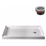 (116) 60 in. L x 36 in. W Alcove Acrylic Shower Pan Base in Glossy White with Right Drain