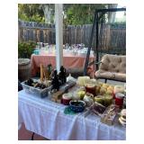 There is a large assortment of so many items! There are cameras and equipment, a large Doll collection, Vintage Fishing reels including a high end Fly fishing reel and pole, various Penn reels, lots of Costume jewelry, Electronics including stereos, a large Kareoke machine, Speakers, Receiver, TV's, Huge amount of kitchen items including Kitchenaid Mixer, Large Instapot, Expresso machine, Food processors, Blenders, Vintage Pyrex, Vintage Revere Ware, Crystal and glass, Nice LG Washer and Dryer on stands, Stainless Steel Refrigerator, Frigidaire Freezer, Mini Refrigerator, Many nice quality clothes for men and women, Vintage Kenmore Sewing Machine, Craft Items, Vintage linens, Antique Quilt, Handicap items including a very nice lift chair, Massage Chair, Furniture including a Queen and Full Mattress set, Beautiful lighted display cases, Vintage desk, Patio Furniture, Plants and pots, Books and more! |