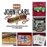 *All items are sold "AS IS, WHERE IS". We at John Carl Auction Company do our best to inspect & describe items accurately. All descriptions are believed to be true and correct but not warranted. You, the bidders, are responsible for inspecting and/or inquiring about condition prior to bidding. *By placing a bid, buyer agrees that they have had sufficient opportunity to examine all lots and are satisfied with the condition of the items.* * There is a 12% buyers premium on all items unless otherwise specified* *John Carl Auction Company reserves the right to bid on behalf of the seller up to reserve price.* *John Carl Auction Company reserves the right to reject any and all bids at any point.* *John Carl Auction Company also reserves the right to reopen any lots in the case of a dispute or system failure.* PAYMENT: *We accept Visa, Mastercard, Discover, and American Express credit cards. A 4% surcharge will be applied to all credit card transactions. For invoices BELOW $300 cards will automatically be charged at close of sale unless another payment method is agreed upon. You must notify John Carl Auction Company upon registration under �notes to the Auctioneer� if you would like to be a cash buyer. *Due to increased instances of fraud all invoices over $300 must be paid by cashiers check, wire transfer or cash prior to shipment or pick up. If your invoice total is over $300 please call or text 717-618-9727 or email johncarlauction@gmail.com to arrange payment. PICK UP: Once an online sale is complete you are responsible for the retrieval of your items by the final pick up date listed for the sale. The buyer is responsible for moving, packing and inspecting all lots at pick up. By accepting the items and removing them from the property the buyer acknowledges that they have had sufficient opportunity to inspect and account for all items and has deemed all lots to be present and in satisfactory condition. John Carl Auction Company is not responsible for any items once they are removed from the property and as such will not engage in disputes regarding condition or authentication after pick up. Items not picked up by the final pick up date listed for the sale will be considered abandoned property without notice. Said items will be forfeited WITHOUT REFUND and become the property John Carl Auction Company. No exceptions. SHIPPING: *If you would like your items shipped please request shipping upon registration. Once an auction ends you have five days from sale end date to contact us to request that your items be shipped. If shipping is not arranged by the buyer within 5 days of the sale closing the items will be considered abandoned property without notice. Said items will be forfeited WITHOUT REFUND and become the property John Carl Auction Company. No exceptions. *Please allow 1-2 weeks for delivery. Specialty items and large shipments may require additional time to prepare. Buyers are responsible for paying all shipping, handling, postage, and insurance fees. Any damage to lots that was not listed in the catalog must be reported to us within 5 days of receiving your order. *Use caution when opening packages. John Carl Auction Company is not responsible for any items that are lost or damaged during shipping. Any package that arrives less than satisfactory should be immediately reported to the carrier service used. The buyer is responsible for submitting insurance claims through the carrier for items lost or damaged during shipping. *If you have any questions, please email johncarlauction@gmail.com, call the office at 717-618-9727, or John at 717-286-8282 ****FIREARMS PICK UP: All firearms must be transferred via the local FFL of our choosing. No firearms will be stored at or picked up from the sale location. Buyer is responsible for all shipping and firearms transfer costs. If the winning bidder is ineligible to own or transfer the firearm(s) for any reason, all items will be forfeited WITHOUT REFUND. No exceptions.**** |