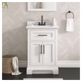 - With decorative accents including the cabinet hardware this vanity is a simple solution to adding functionality and beauty to your decor. The cabinet is fully assembled for easy installation.